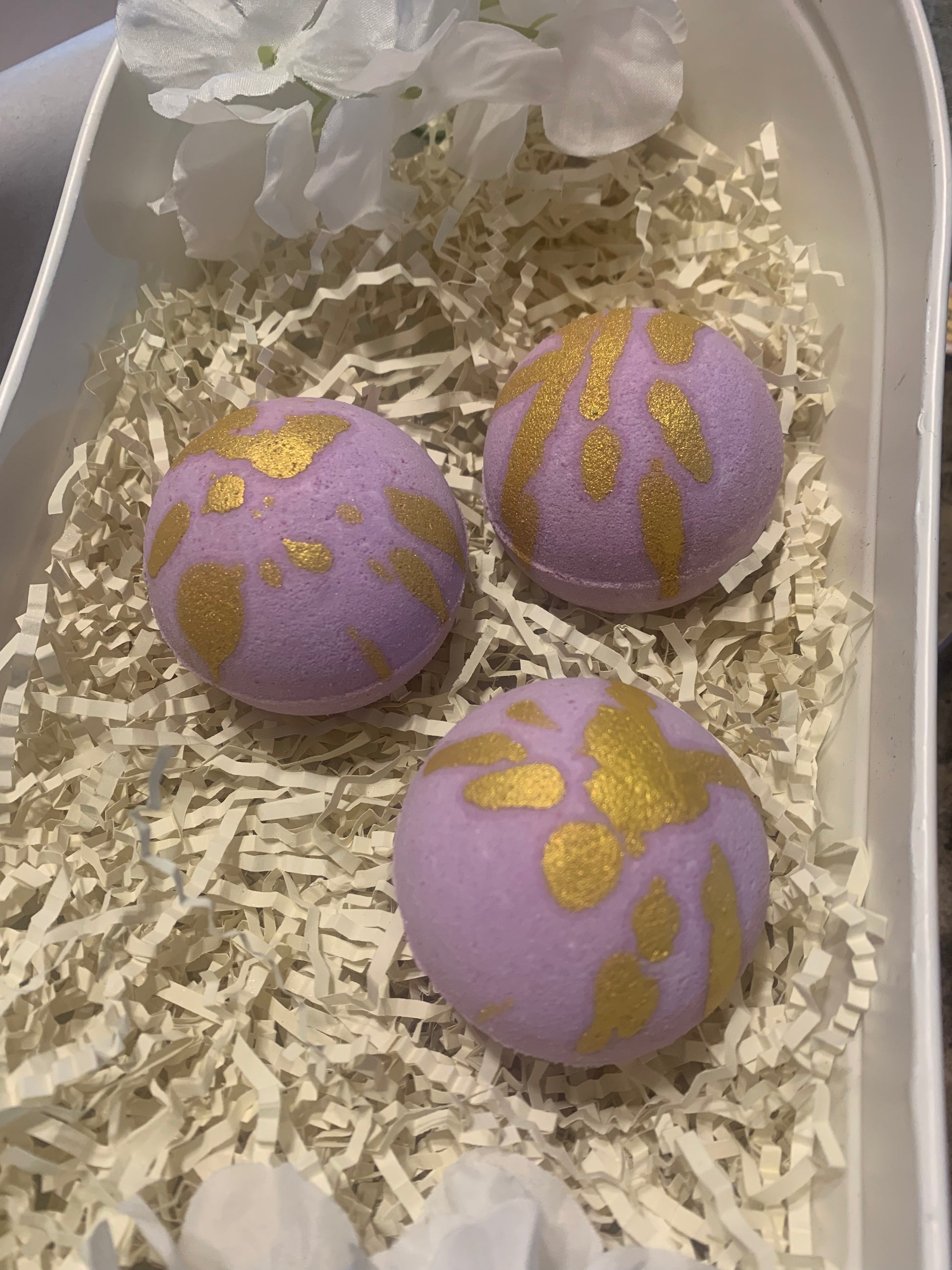 This golden grape bath bomb is highly scented with a delicious grape jolly rancher scent plus hydrating grape seed oil and shea butter for a super nourishing bath!